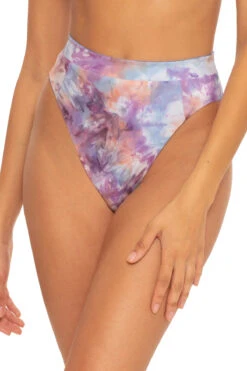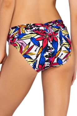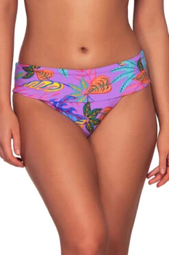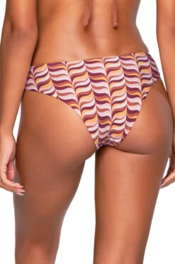 Adela hipster bikini bottom features a reversible retro optical geo print and a cinch back and offers moderate coverage.