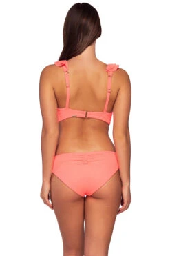 Alexia bikini top features a shiny stretch satin with strappy interlinked details to create a basketweave effect. Offers removable cups, adjustable straps and a hook back closure.
