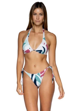 The Hailey Halter has a scooped neckline with an underwire for support. It features an adjustable neck tie and a back hook closure. This top is both comfortable and cute.