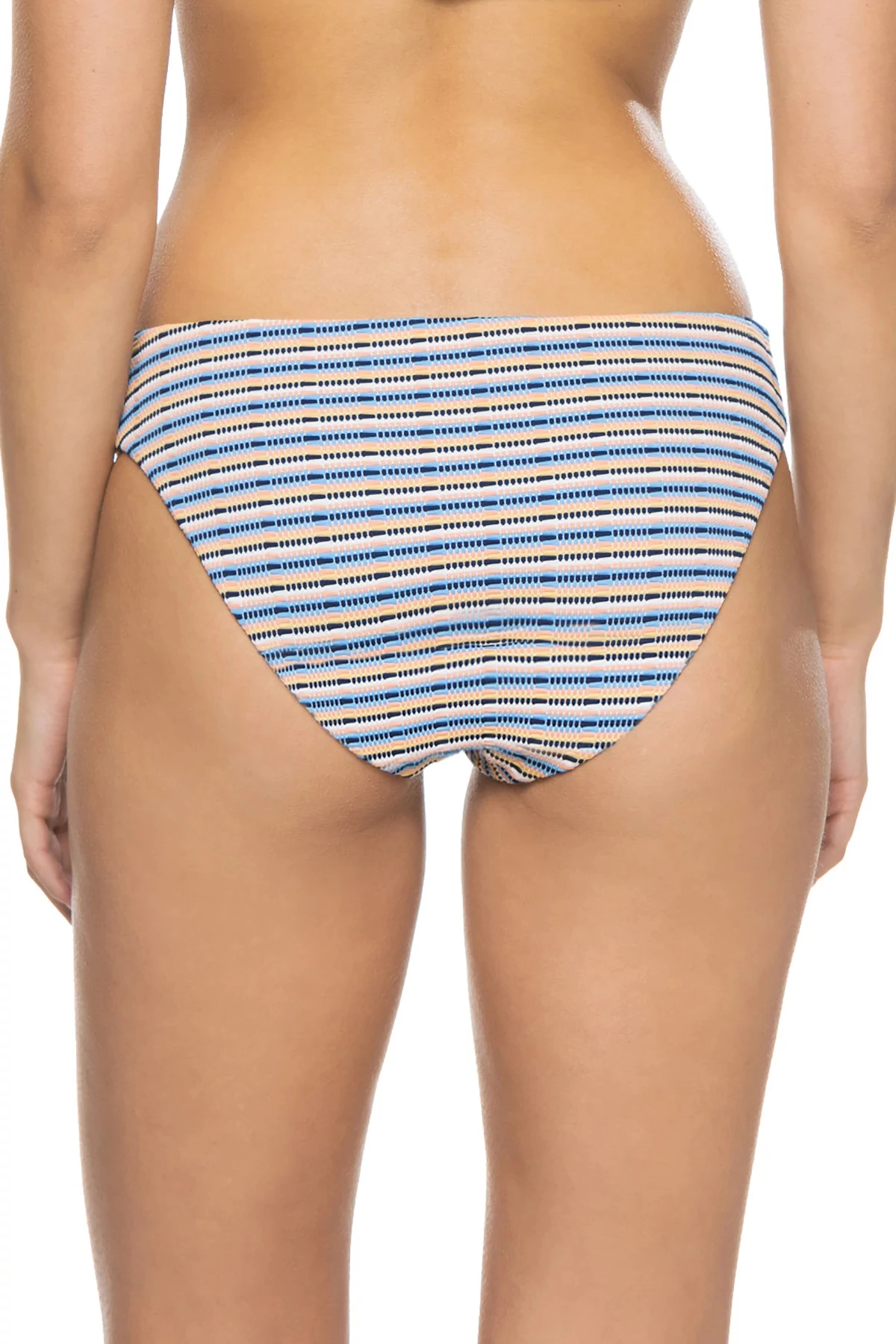 Lily bikini bottom is a classic hipster in ribbed, stripe fabric. Offers moderate coverage.