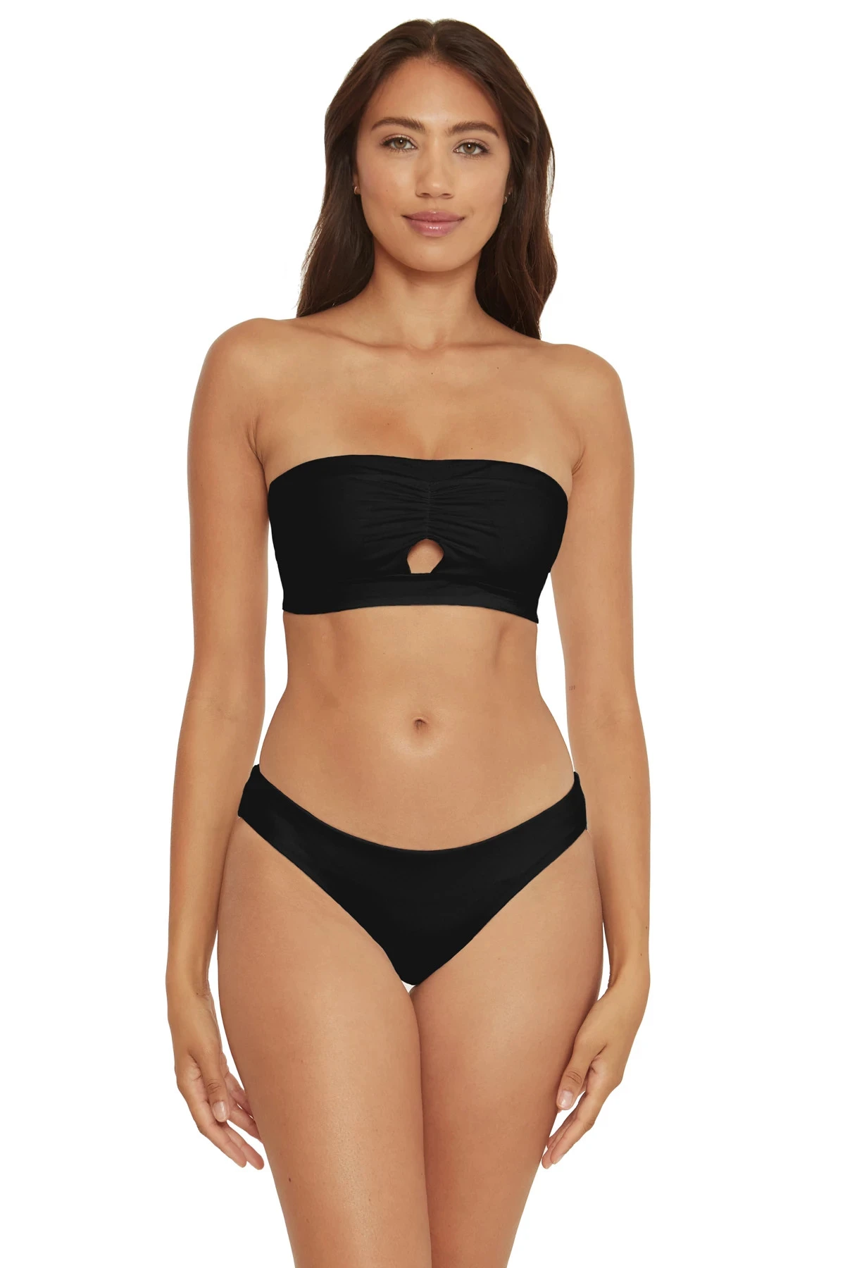 Rylie convertible bandeau bikini top features an asymmetrical neckline with a wide sash strap. Offers adjustable tie back, side stays, and self lining.