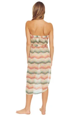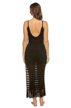 Mini dress features a high neckline with an adjustable knot side tie, slub burn out knit fabric and a keyhole back.