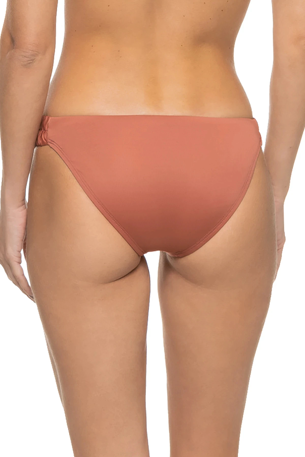 Zuri hipster bikini bottom is a classic silhouette that is fully lined featuring scrunchie strap detail at hips and offers moderate coverage.